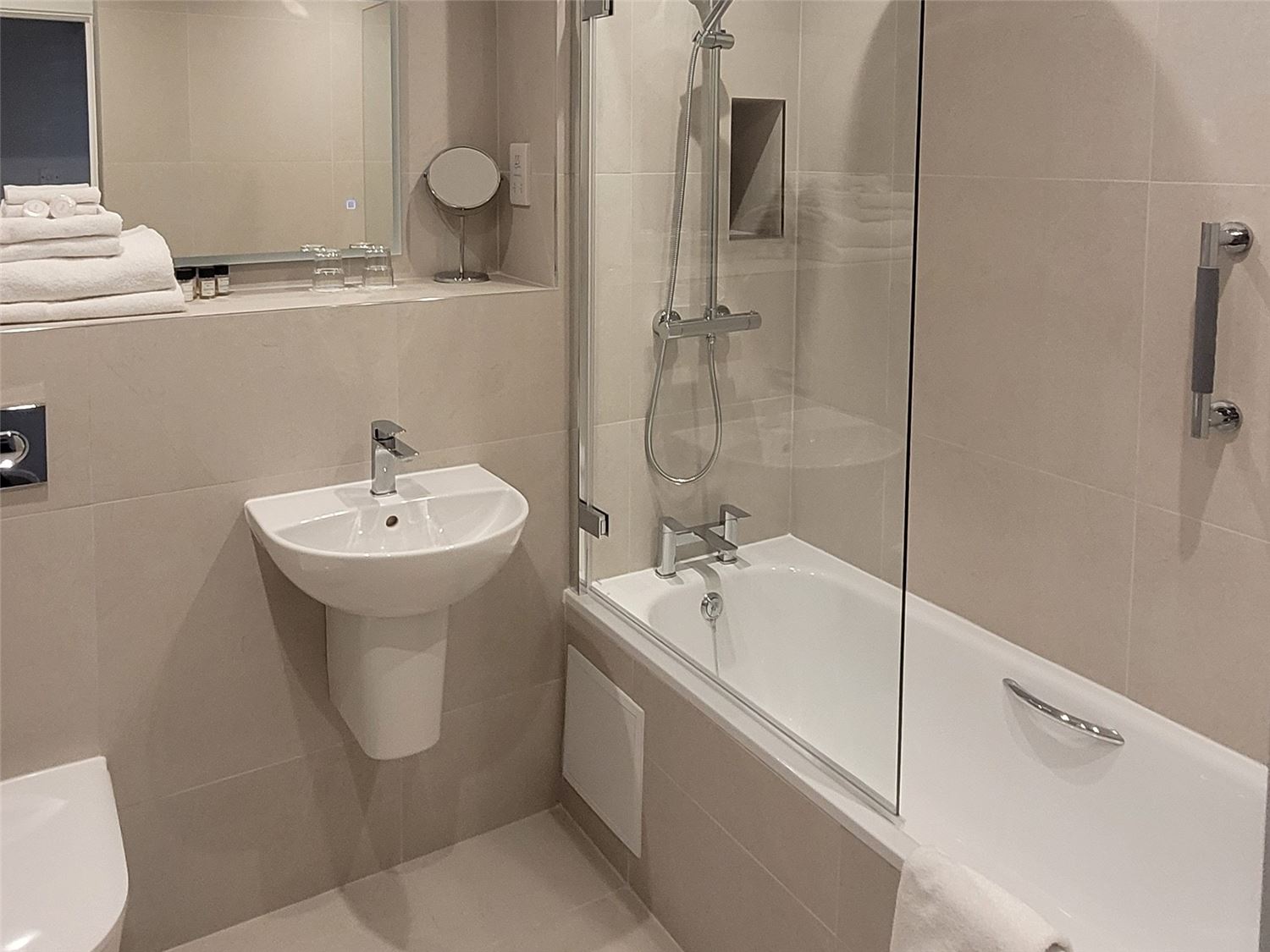 2 Bathrooms: both with bath and shower-over, sink and WC. One instant shower in each apartment